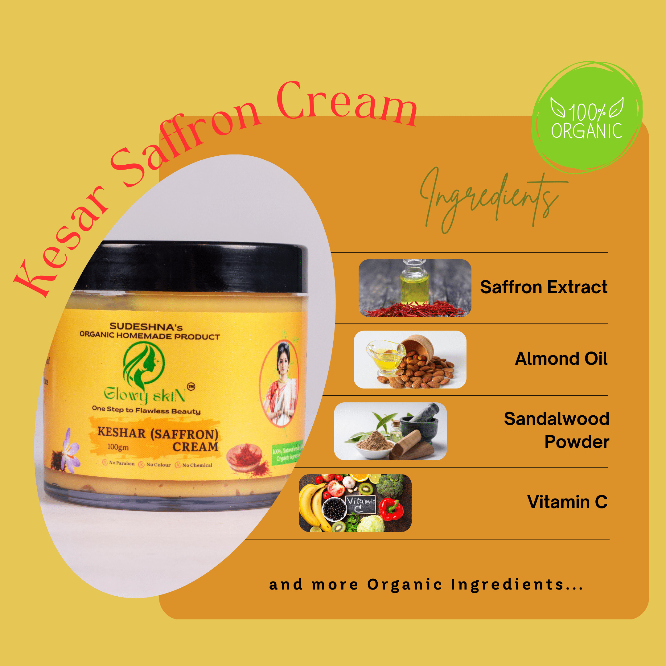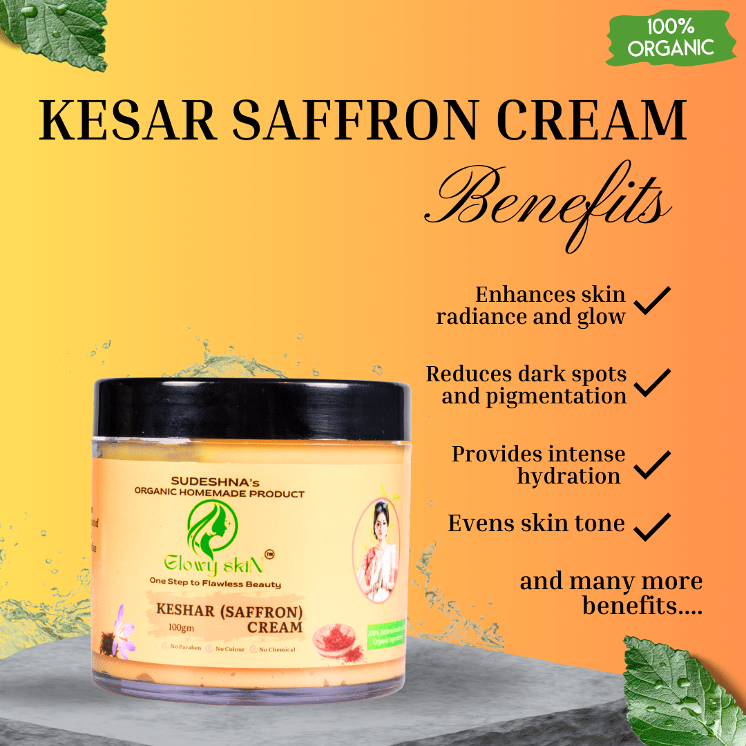 A luxurious skin-brightening cream infused with saffron, turmeric, and almond oil to enhance your natural glow. It helps reduce dark spots, pigmentation, and uneven skin tone while deeply moisturizing. This rich, non-greasy formula boosts collagen production, giving your skin a radiant, youthful, and healthy appearance.
